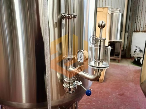 精釀啤酒設備使用的過濾槽與旋沉罐:采用上下兩層的設計方式,整體占地面積小,過濾槽采用銑制篩板,頂部采用異型人孔設計,側(cè)面配有出糟口,方形人孔門設計更有利于啤酒麥糟的清理工作,同時還配有出糟板。內(nèi)部配有耕刀裝置,用于疏松麥糟層以及出糟使用。